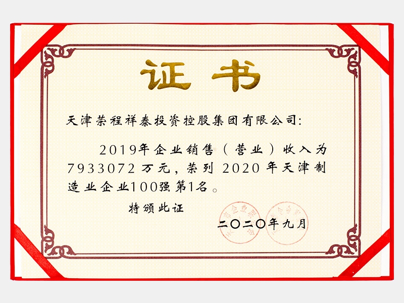 2019年企業銷售(營業)收入為7933072萬元,榮列2020年天津制造業企業100強第1名